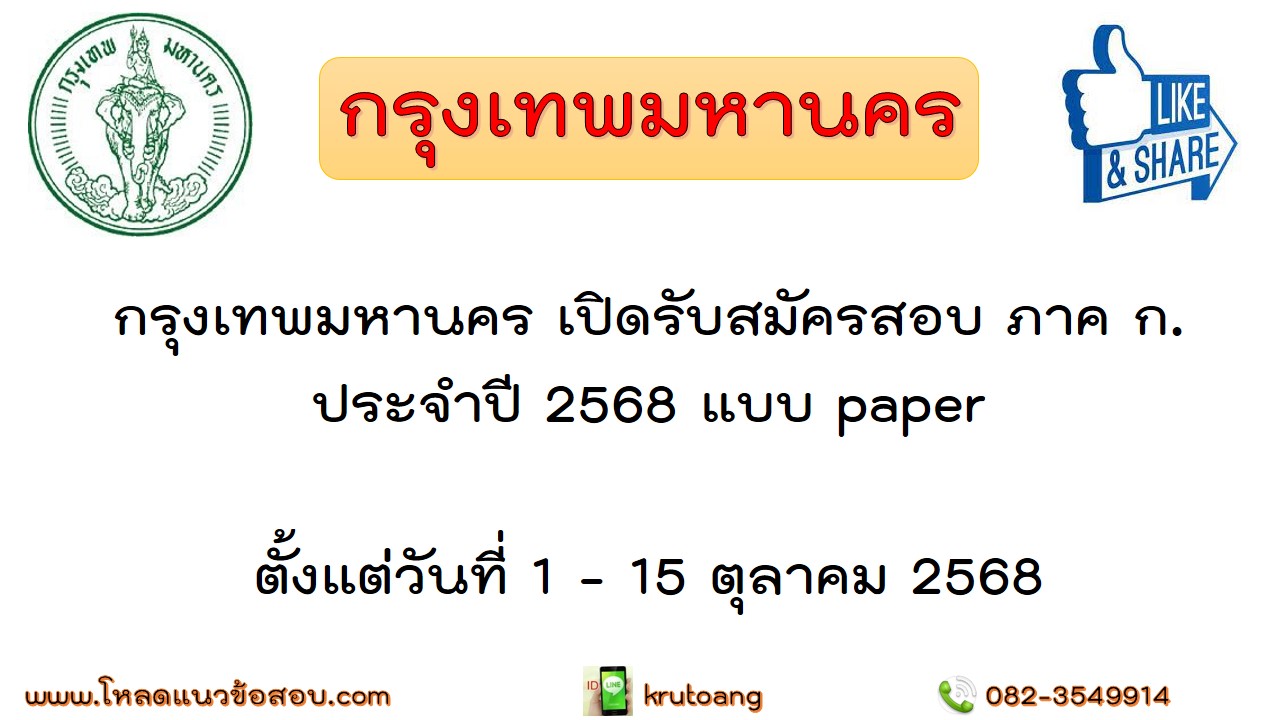 กรุงเทพมหานคร เปิดรับสมัครสอบ ภาค ก. ประจำปี 2568 แบบ paper รับสมัครทางอินเทอร์เน็ต ตั้งแต่วันที่ 1 - 15 ตุลาคม 2568